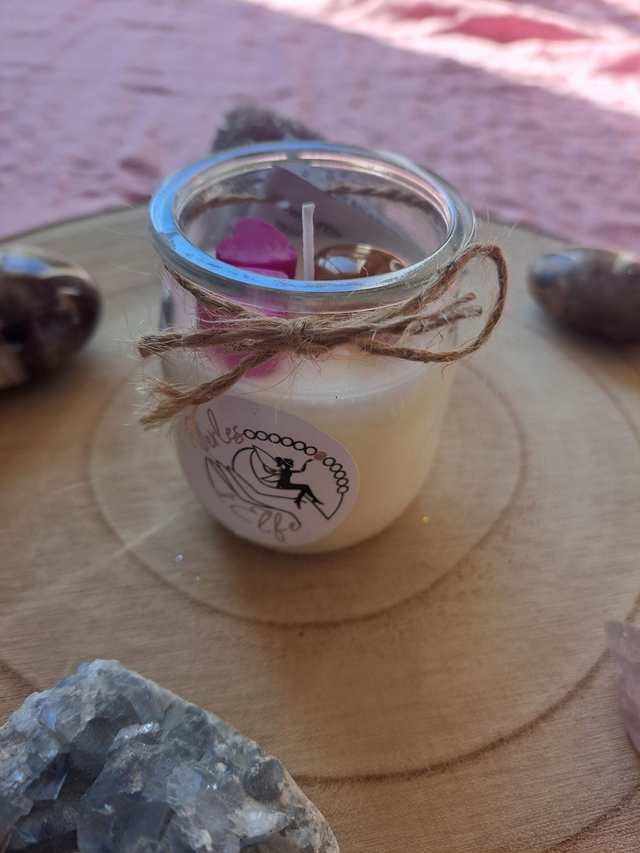 Bougie avec collier en acier inoxydable et pierre roulée cornaline